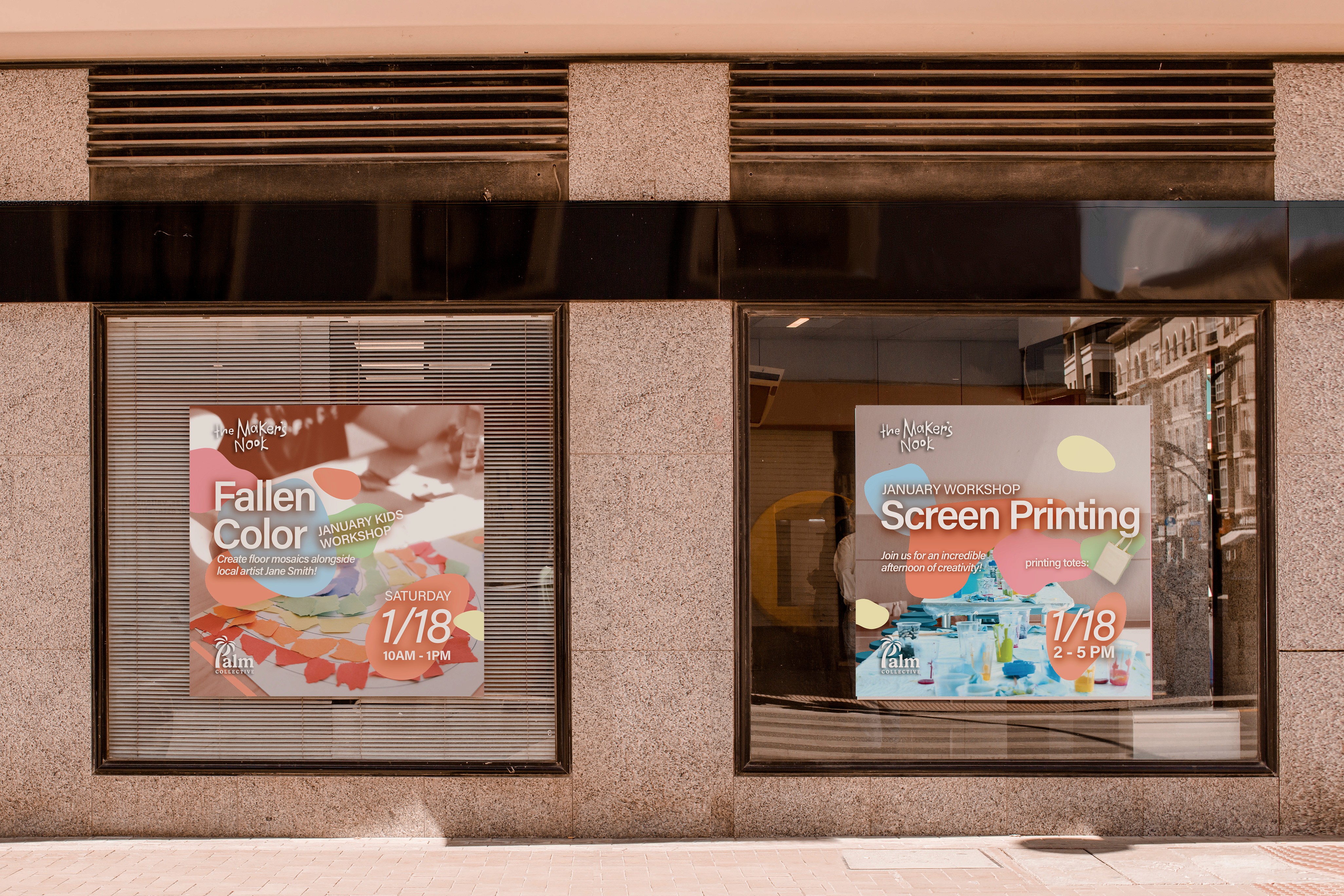 concept for a workshop-based craft store located in Palm Springs within a fictional art collective, the Palm Collective.